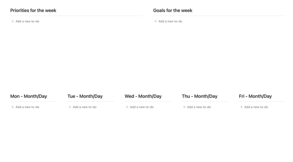 - Goals for the week
