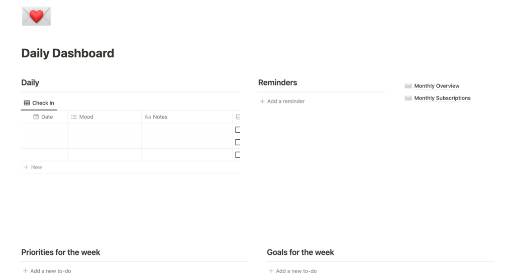 "Daily Dashboard" Notion Template